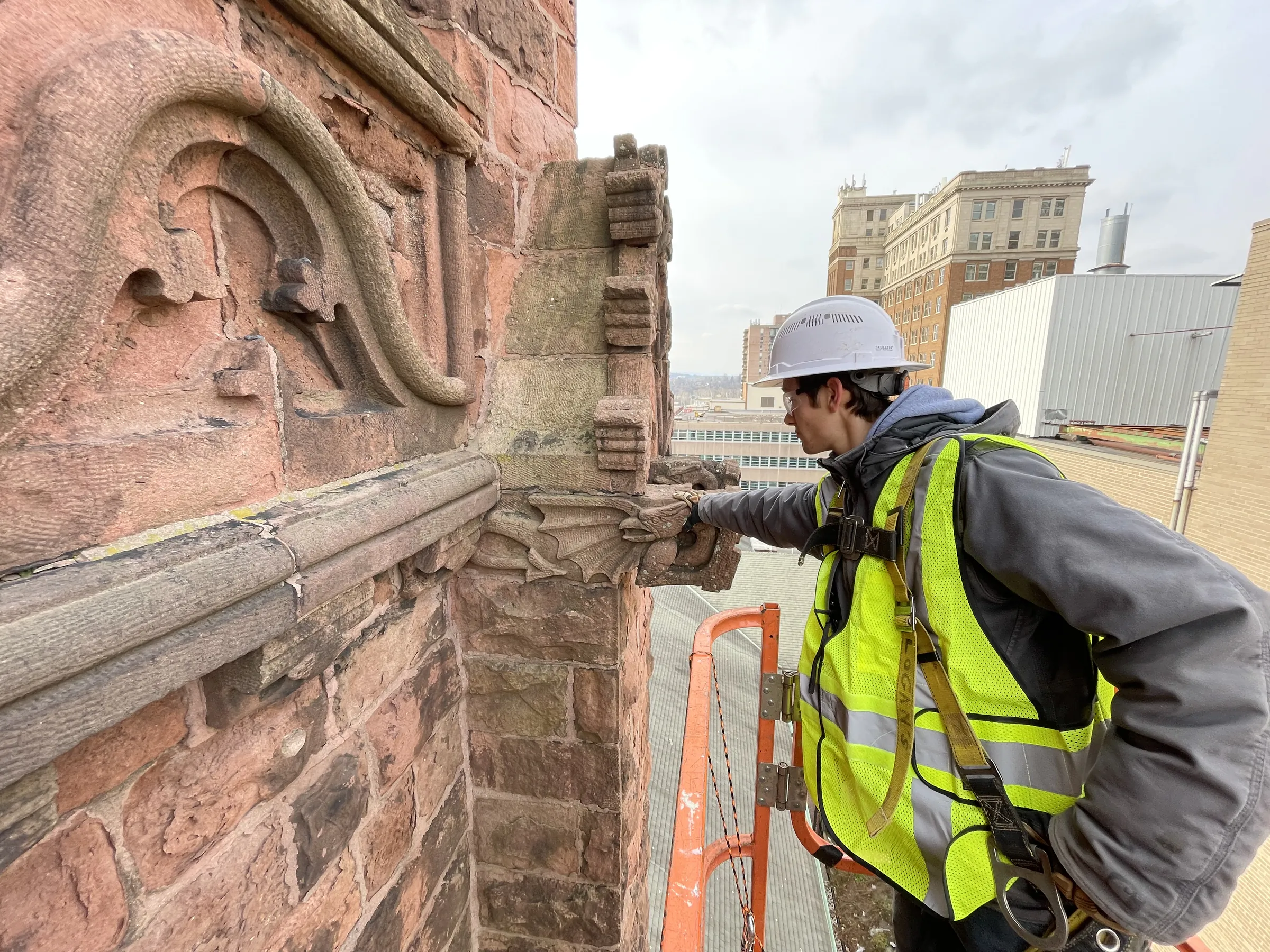 High-elevation elements such as spires, towers, parapets, and ornamental stonework are documented using drone surveys, allowing for close inspection without invasive access. Findings are compiled into a detailed report, including photographs, condition descriptions, and recommended repair approaches. When available, historical records are reviewed to understand previous interventions and long-term patterns of deterioration.